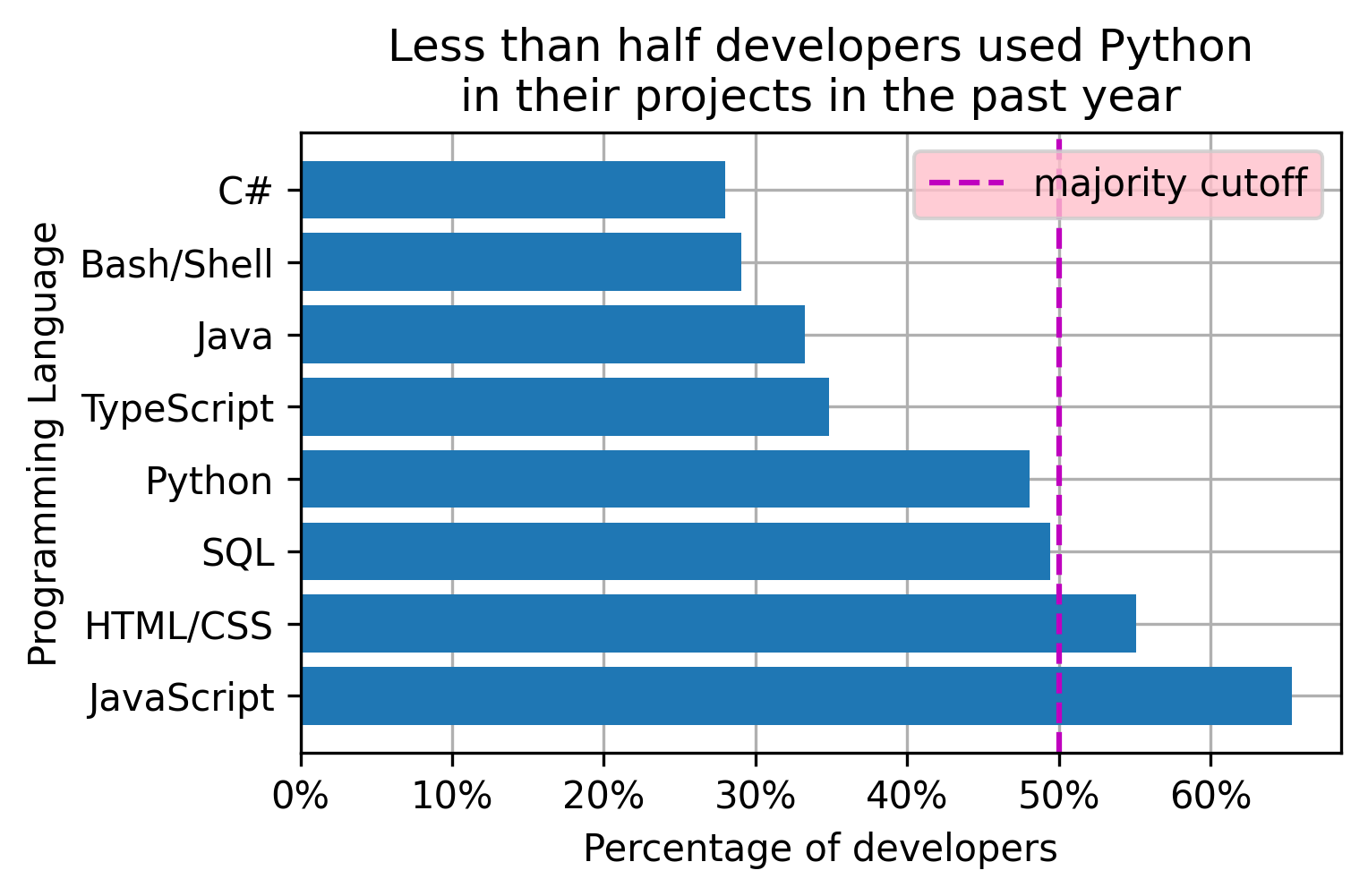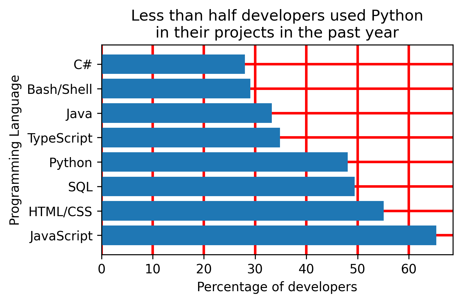 This will still force my reader to make an effort finding the Python bar and comparing its length to the others but the focus is already there.